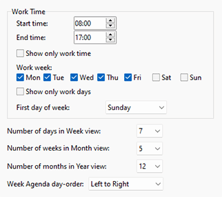 Adjust the number of visible days, weeks, and months based on your preference. Additionally, you have the flexibility to customize your work week and work time settings to align with your schedule and working hours.